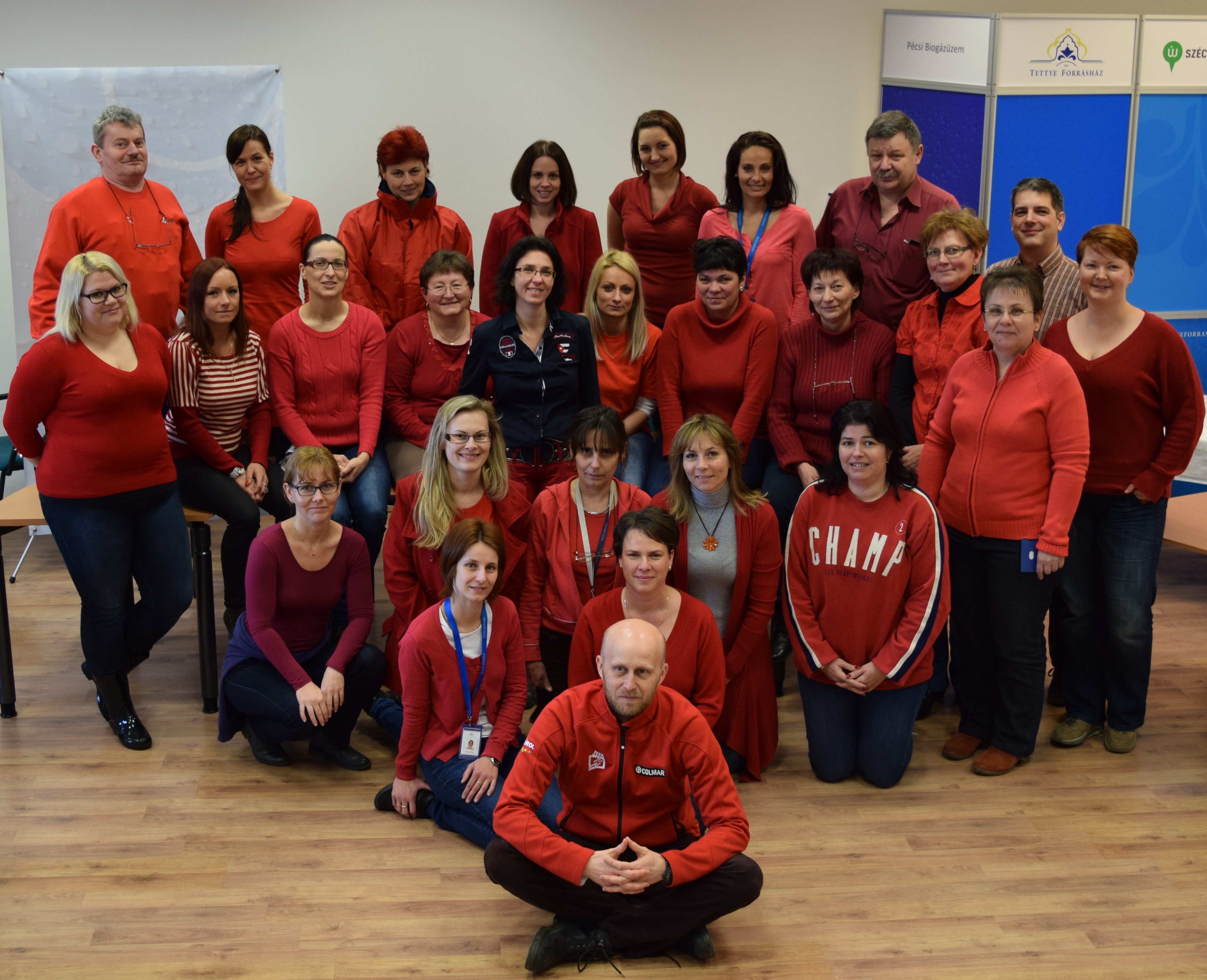 Február 19-én, pénteken közel 50 munkatársunk öltözött pirosba vagy viselt valamilyen piros színű kiegészítőt. Az ügyfélszolgálati irodánkban is pirosba öltözve fogadtuk az ügyfeleket, akik közül többen az országos közösségi megmozdulásnak köszönhetően pirosban érkeztek.
