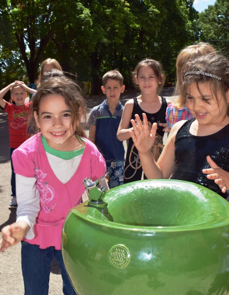 Az udvarra telepített díszes Zsolnay-ivókutat Sándor Zsolt, a társaság vezérigazgatója adta át a Komlói úti intézmény igazgatójának és diákjainak, megköszönve a gyerekek és az őket biztató pedagógusok munkáját.