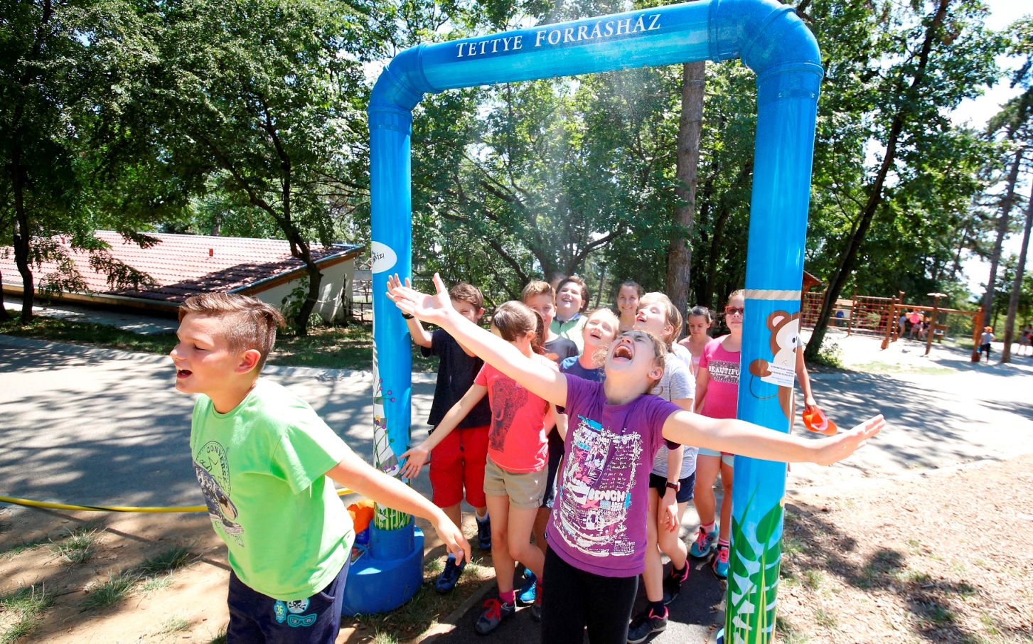 A Pécsi Állatkertben újabb vizes felfrissülés várja a látogatókat, csütörtökön permetkaput adtak át a TETTYE FORRÁSHÁZ Zrt. támogatásának köszönhetően. A zootábor résztvevői már ki is próbálták a hűsítő vízpárát szóró kaput, amelyet állatfigurákkal díszítve a mókusmajmok kifutója közelében állítottak fel a nyári időszakra.