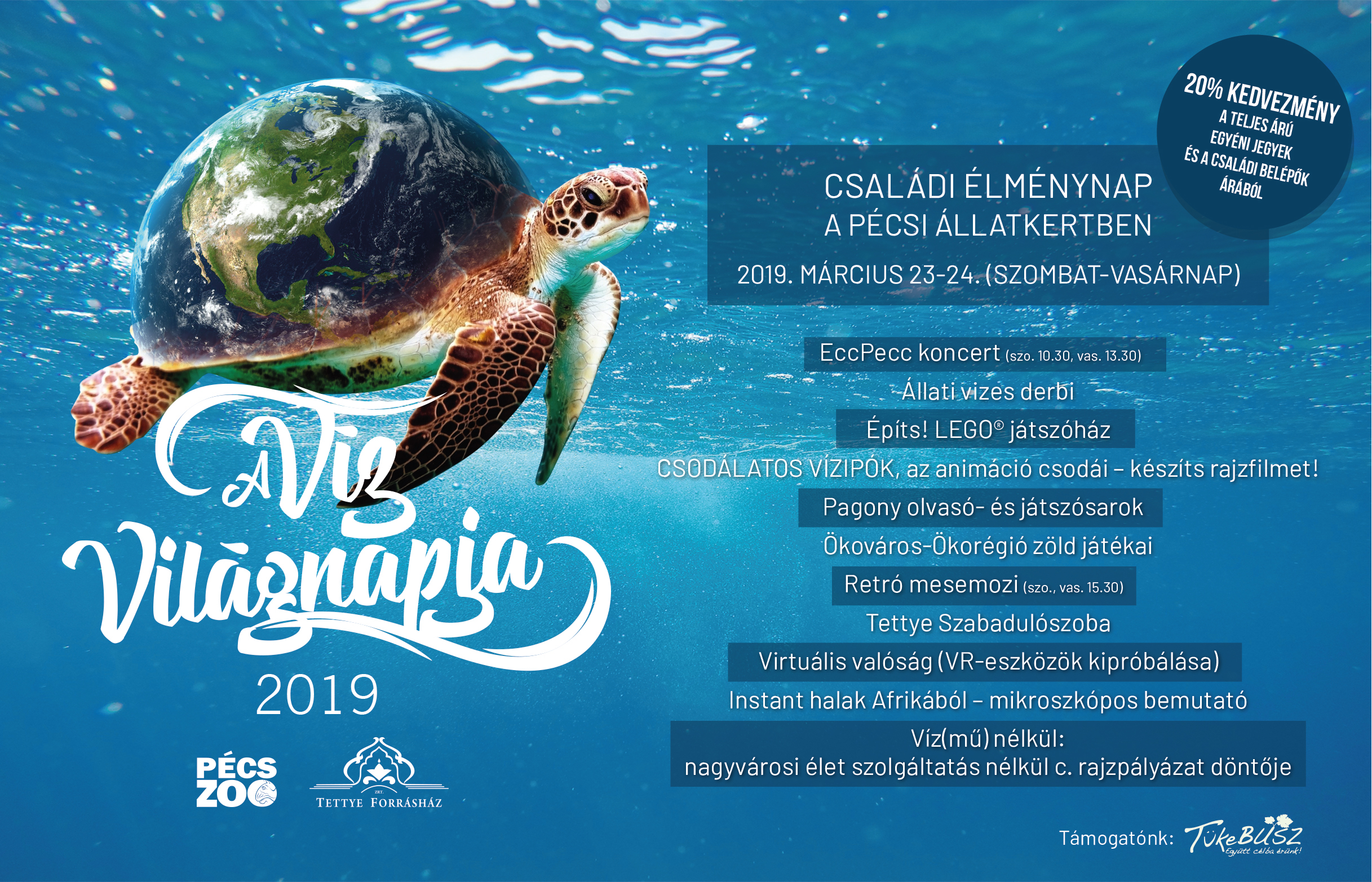 Március 22-én ünnepeljük a Víz világnapját, amely alkalomból idén harmadszor rendezzük meg közösen és Pécsi Állatkerttel a vizes családi hétvégét a Zoo-ban március 23-24-én.