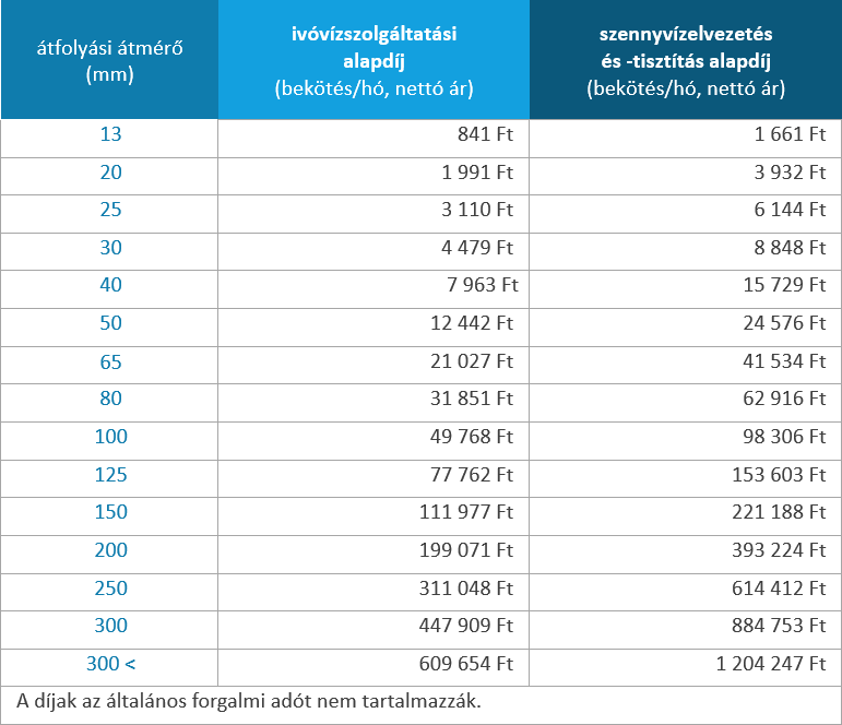 A szolgáltatási díj országosan, így a TETTYE FORRÁSHÁZ Zrt. ellátási területén is kéttényezőssé válik: fogyasztás arányos díjból és az átfolyási átmérőtől függő alapdíjból áll. (A felhasználók vízmérőjük átmérőjét online ügyfélszolgálatunkra belépve az „Ügyféladataim” menüpontban ellenőrizhetik januártól.)