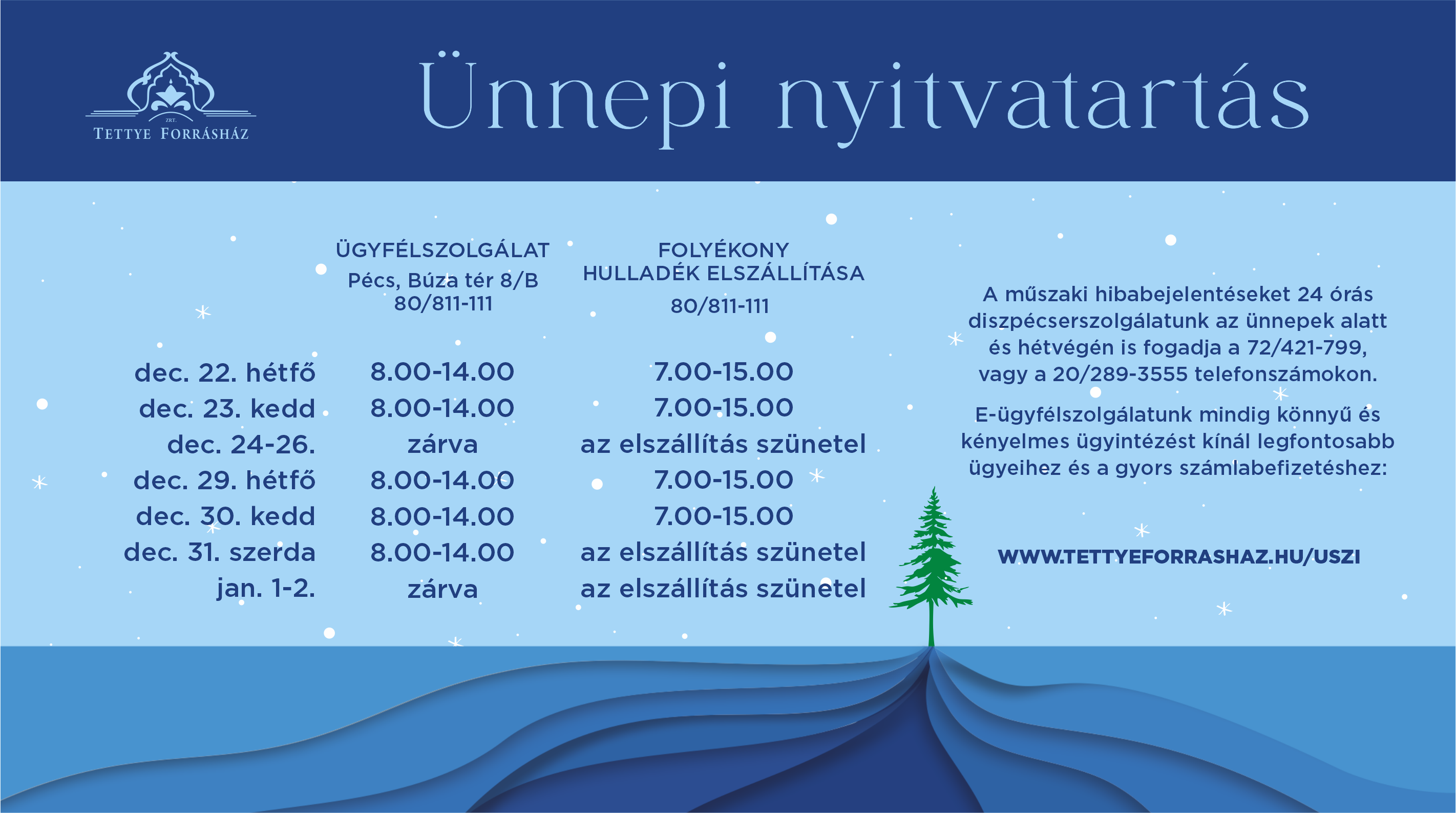 A TETTYE FORRÁSHÁZ Zrt. ünnepi nyitvatartása