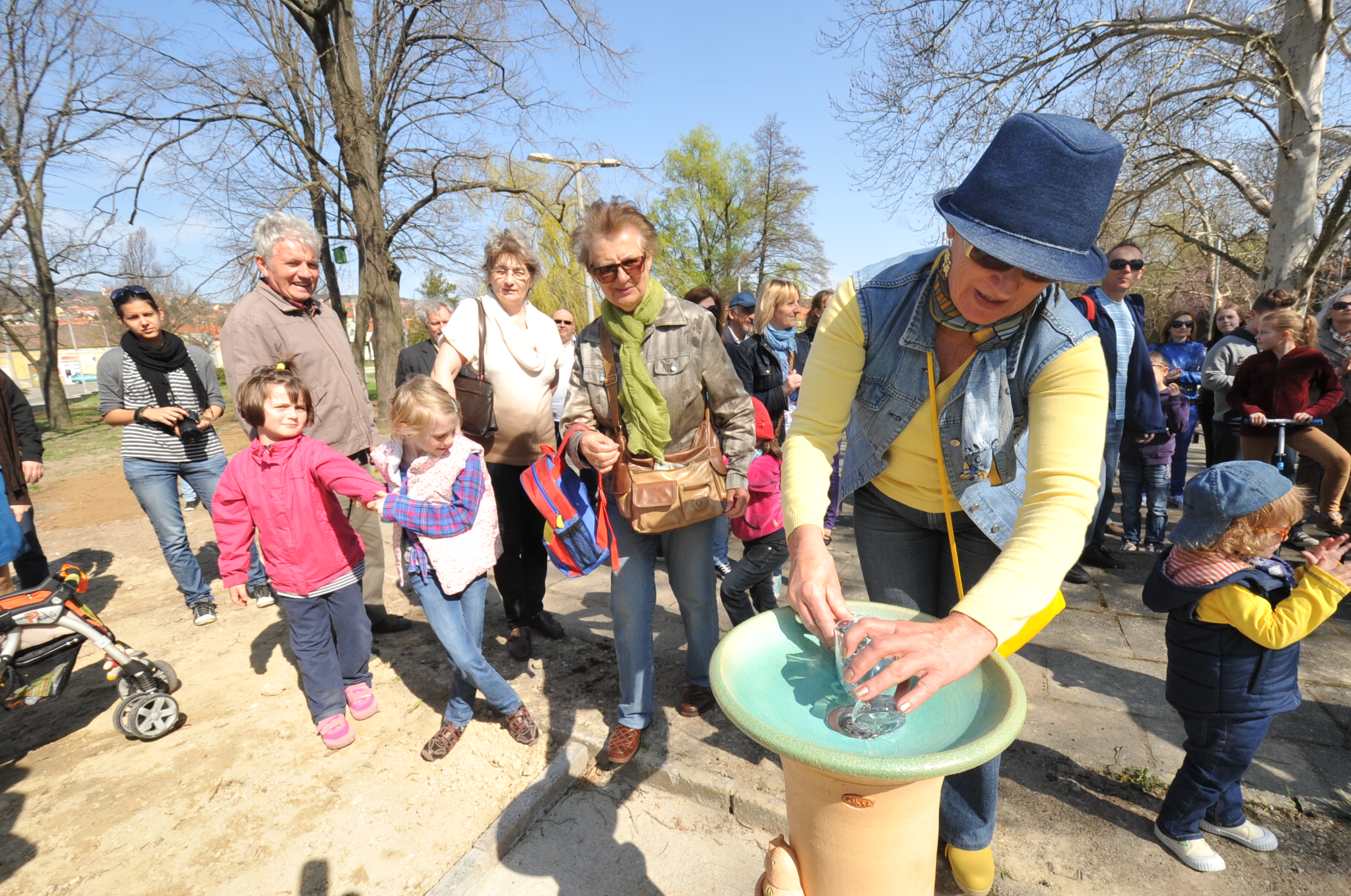 Március 22-én a Balokány ligetben avattuk fel az idei víz világnapi ivókutat, mely Baksa Gyöngyi pécsi keramikus iparművész alkotása.