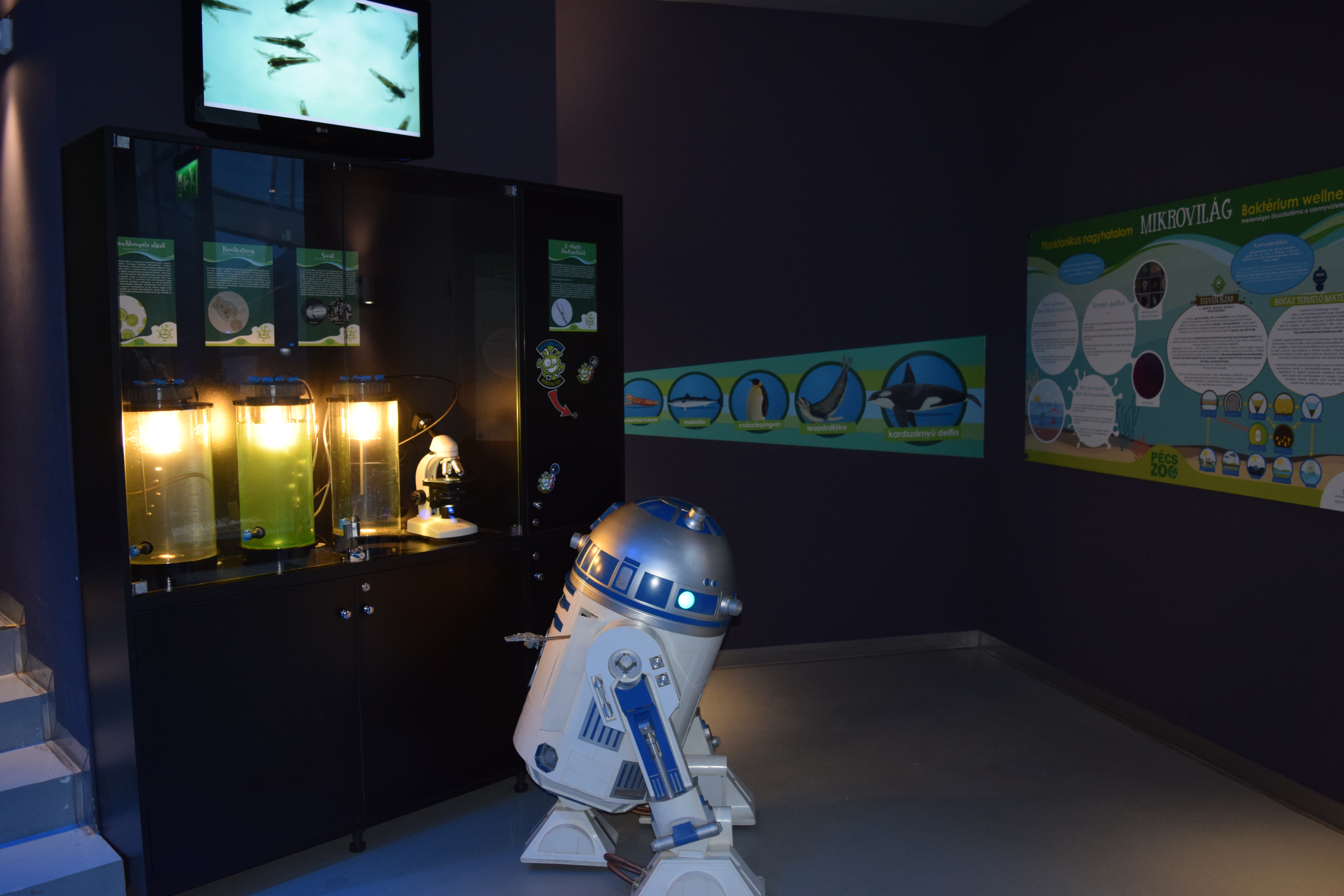 A minket körülvevő természetes világ kétharmada szabad szemmel nem látható, ebből ad ízelítőt a pécsi MIKROVILÁG, ahol a látogatók növényi és állati planktonokat figyelhetnek meg: így például színes fényt kibocsátó, világító algákat, kerekesférgeket és sórákokat. Ezek a parányi, ősi élőlények nélkülözhetetlenek, az élet alapját jelentik (a tengeri fitoplanktonok a légkör oxigénjének 90 százalékát állítják elő, emellett a vízi tápláléklánc alapját alkotják). Évmilliókkal ezelőtt ilyen mikroorganizmusok alakították ki a Földön az élhető környezetet, tisztították meg a levegőt, vizeket.