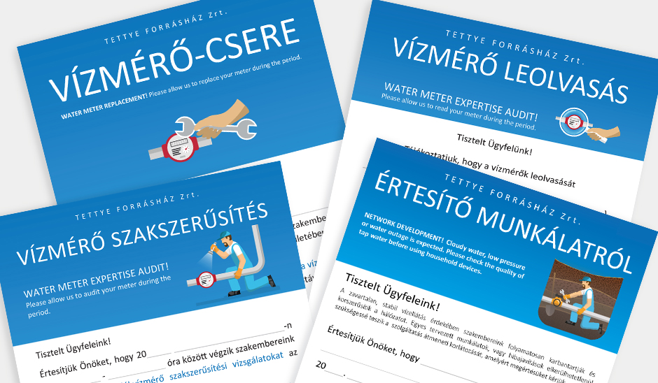 Új külsőt kaptak a társaságunk által használt értesítő plakátok! Júniustól frissített arculatú értesítőkön tájékoztatjuk ügyfeleinket a tervezett munkálatokról, leolvasásról, mérőcseréről.