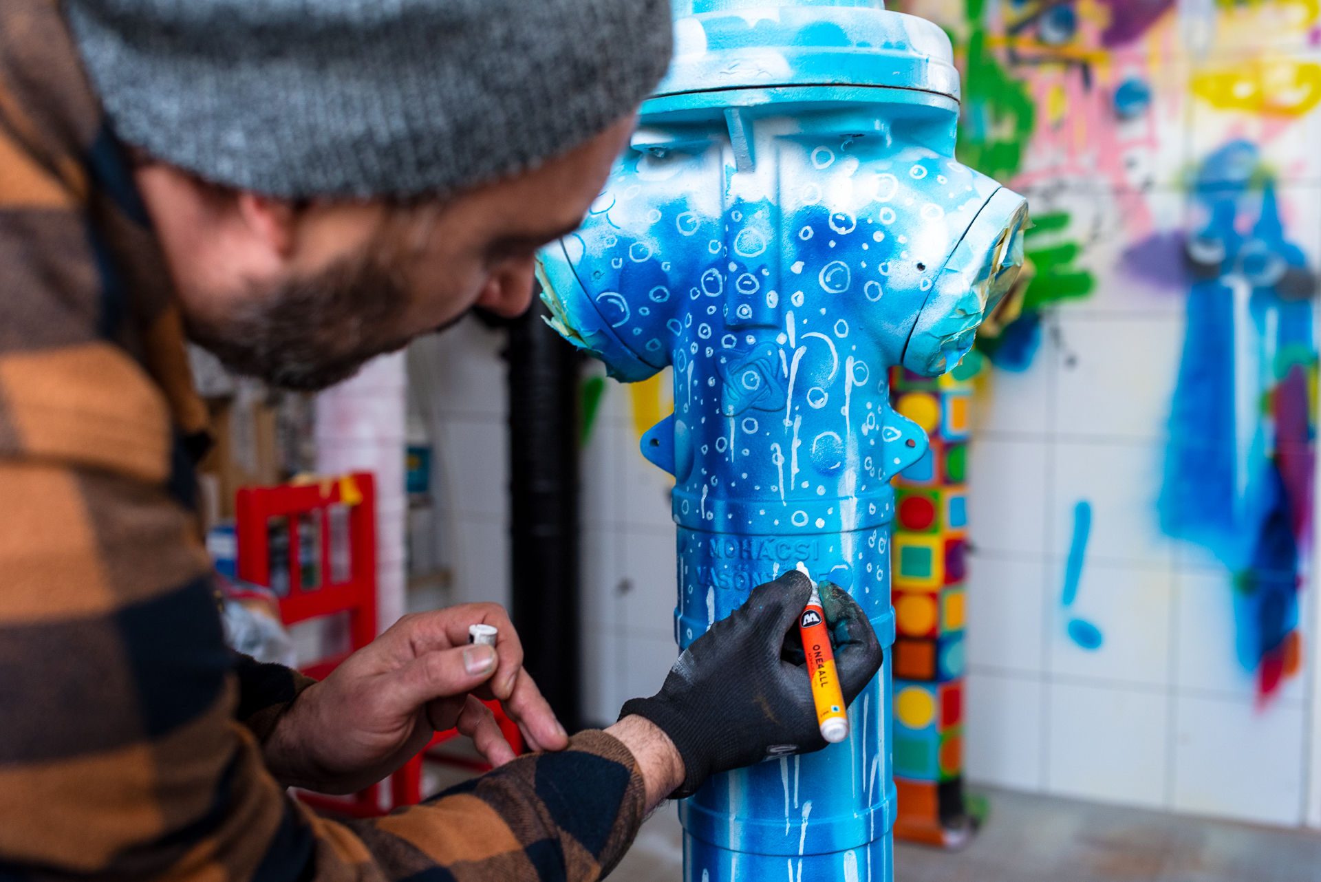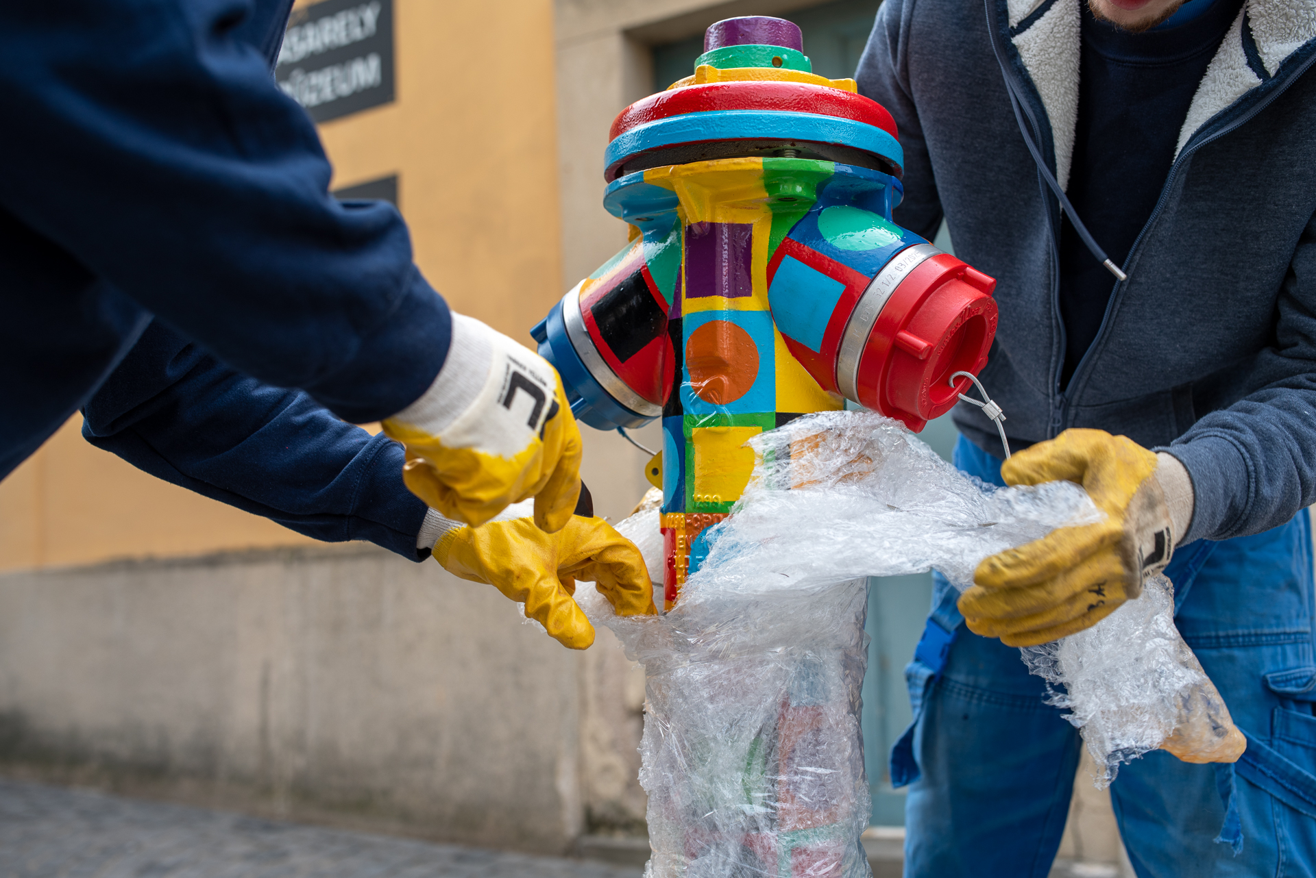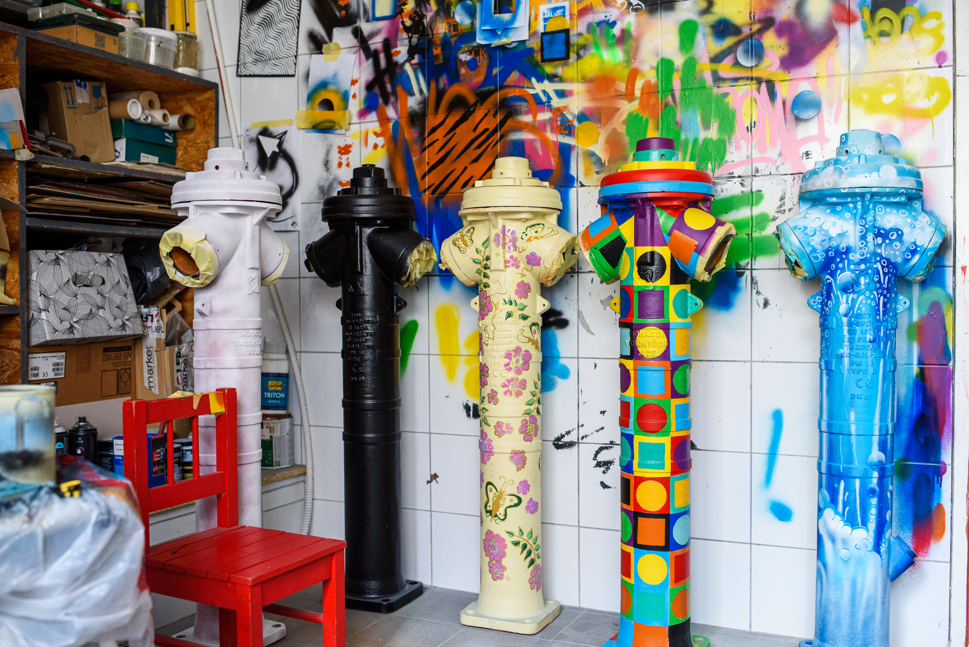 A tűzcsapok festését Bubreg Balázs pécsi képzőművész készítette, aki számára a projekt különleges nézőpontváltást jelentett: „Eddig tűzcsapokat festettem vászonra, most ez megfordult: műtárgyakat, alkotásokat vittem fel a tűzcsapra. Klasszikus iparművészeti elemeket klasszikus street art eszközökkel és technikával adaptáltunk a szerelvényekre: filccel, akrillal, szabad kézzel. Ez a projekt számomra arról is szól, hogy a street art úgy tud közelebb kerülni a városlakókhoz, hogy nem rombolásként, hanem értékként tekintenek rá.” – mondta el a művész.