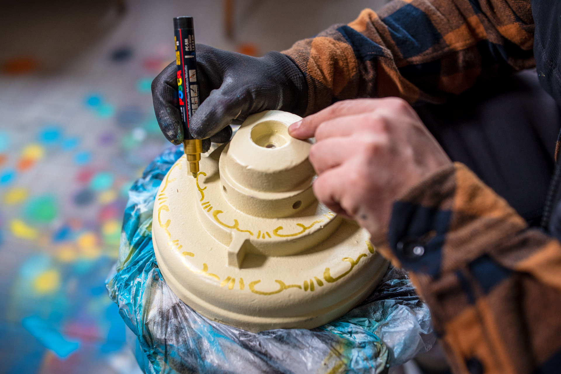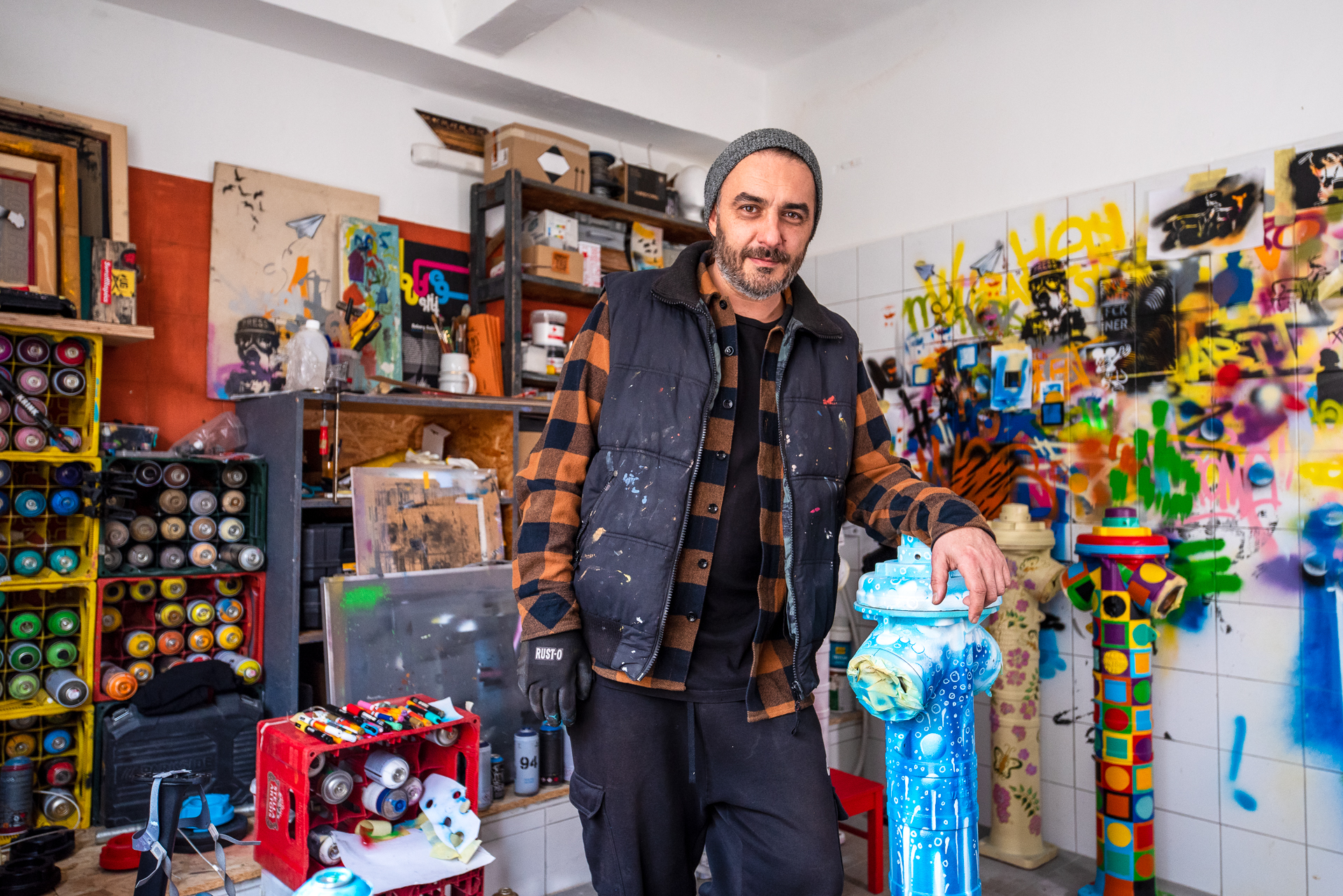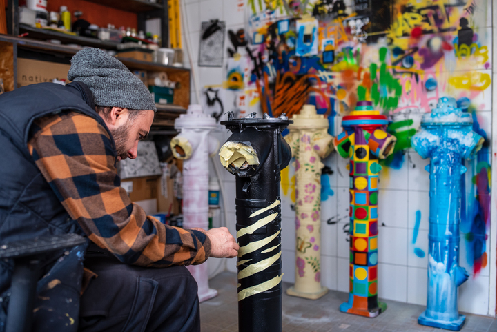 A tűzcsapok festését Bubreg Balázs pécsi képzőművész készítette, aki számára a projekt különleges nézőpontváltást jelentett: „Eddig tűzcsapokat festettem vászonra, most ez megfordult: műtárgyakat, alkotásokat vittem fel a tűzcsapra. Klasszikus iparművészeti elemeket klasszikus street art eszközökkel és technikával adaptáltunk a szerelvényekre: filccel, akrillal, szabad kézzel. Ez a projekt számomra arról is szól, hogy a street art úgy tud közelebb kerülni a városlakókhoz, hogy nem rombolásként, hanem értékként tekintenek rá.” – mondta el a művész.